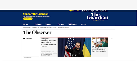 The Observer cover doesn't reflect generic conventions of a broadsheet newspaper. This is shown when looking at their skybox, this is due to its vibrant and saturated colour choices which is unusual for a broadsheet newspaper. As I have mentioned they tend to be more discreet and subtle in their conventions. This is also proven when reading what is on the skybox as it mentions about lifestyle which isn't really seen in broadsheet newspapers as they tend to focus more on hard news compared to soft news. There is also talk about fashion tips which can be seen as some equality as this paper is for men and women, where fashion isn't really talked about among men but here it is displayed on the front cover. Showing how the Observer doest follow these broadsheet newspaper conventions in this part. The Observer shows how the consumerism in our society is relevant in their skybox presenting products as something we couldn't love without which is relevant in our society as fast fashion is becoming an issue that many of us indulge in.